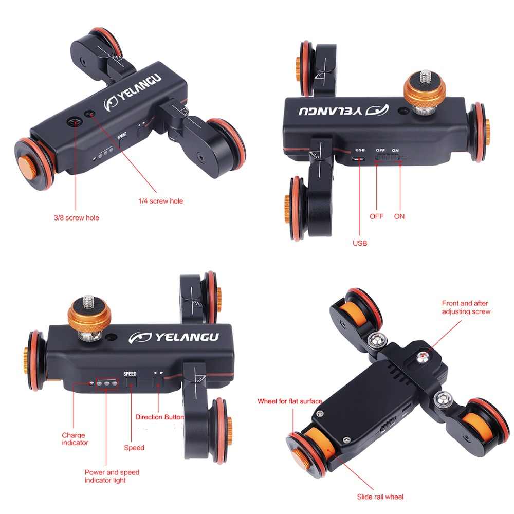 YELANGU L4X Motorized DSLR Dolly with Remote (Black)